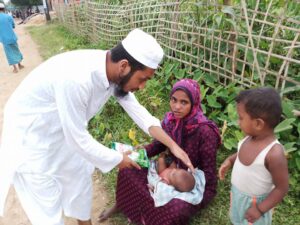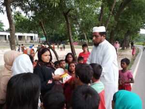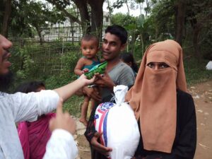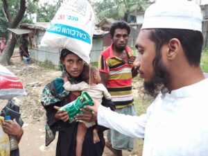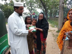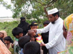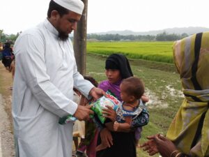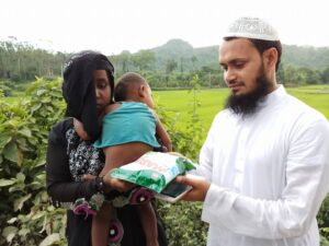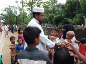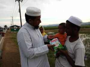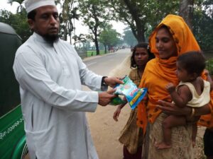 একাদেমিয়া পাঠচক্রের পক্ষে থ্যেইংখালী ক্যাম্পে আশ্রয় নেওয়া রোহিঙ্গা শরণার্থী মায়েদের হাতে শিশুখাদ্য হিসেবে ৫০০ গ্রাম ওজনের প্যাকেটজাত দুধ পাউডার বিতরণ করা হয়।