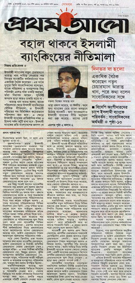 আজকে ইসলামী ব্যাংক নিয়ে যেই খবর প্রকাশিত হয়েছে সেখানে প্রিন্ট ভার্শনের দ্বিতীয় পৃষ্ঠায় এই প্যারাটা ছিল। (ইমেজে দেখুন)