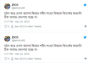 মুক্তিযুদ্ধে শহিদের সংখ্যা নিয়ে বিএনপি নেত্রী খালেদা জিয়ার বক্তব্য সামাজিক যোগাযোগের মাধ্যম, যেমন ফেসবুক, টুইটার এবং ব্লগে আলোচনার জন্ম দিয়েছে৷ এদিকে, মন্তব্য প্রত্যাহার করতে খালেদাকে উকিল নোটিশ পাঠানো হয়েছে৷