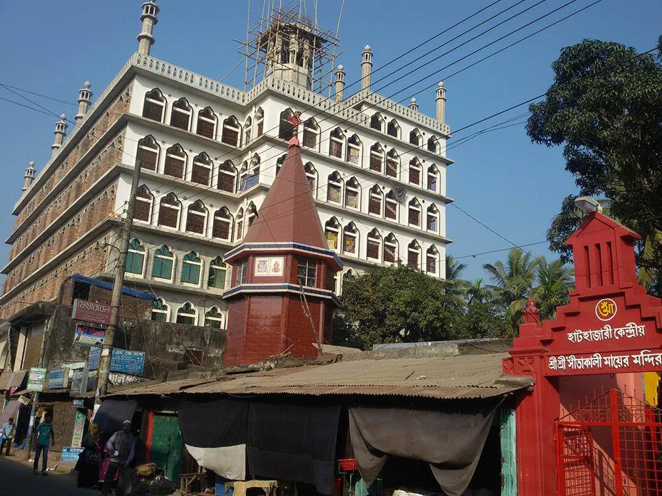 Hindu temple of Shree Shree Sitakali, juxtaposed with the central mosque in Jamia Darul Uloom Hathajari, the biggest private Islamic school in Bangladesh, for centuries. So far there is no history of any untoward incident between the thousands of students and teachers of the Islamic school and the Hindus who worship in the temple. This wonderful Bangladeshi example proves that, in their respective places of worship, although they are placed side by side, two different religious beliefs can co-exist in perfect harmony.