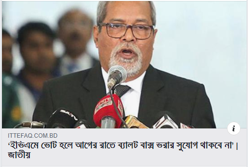 বাংলাদেশের প্রধান নির্বাচন কমিশনার অবশেষে স্বীকার করে নিলেন গত জাতীয় নির্বাচনে আগের রাতে জালিয়াতি করে ব্যালট বাক্স ভরা হয়।