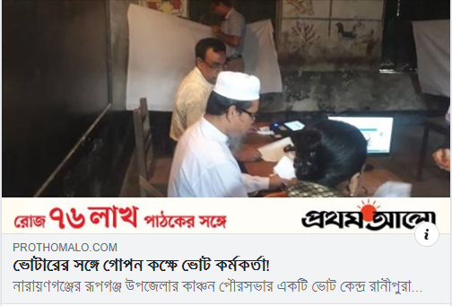 Local election of Kanchan municipality of Roopganj sub-district, Narayanganj, was held on Thursday. It appears that most voters in this municipality election could not cast their votes independently. Polling agents and other workers of different candidates accompanied the voters when they entered the secret chamber to cast their votes on the EVMs, journalists found at least in one voting centre in Narayanganj.