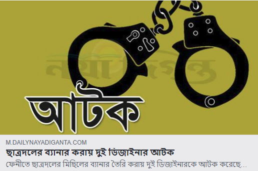 Police have detained two men in Feni, Bangladesh, because they designed a banner for Chhatrodol- the student wing of the main opposition party of BNP. One of the two is Samir Das, a professional designer, according to this report in Naya Diganta, a Bengali language national daily in Bangladesh.