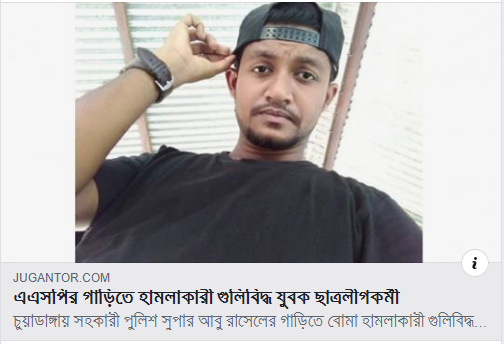 চুয়াডাঙ্গায় সহকারী পুলিশ সুপার আবু রাসেলের গাড়িতে বোমা হামলাকারী গুলিবিদ্ধ যুবকের পরিচয় পাওয়া গেছে; তার নাম খালিদুজ্জামান টিটু, সে সরকারী দল আওয়ামী লীগের ছাত্র সংগঠন ছাত্রলীগের একজন কর্মী।