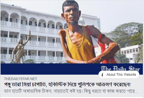 Police in Bangladesh have filed a criminal case against a beggar who is physically crippled- his right hand is completely disabled since his birth and the left is very weak. Police charged that Tara Mia attacked them with machete, rod and hockey stick on December 28.