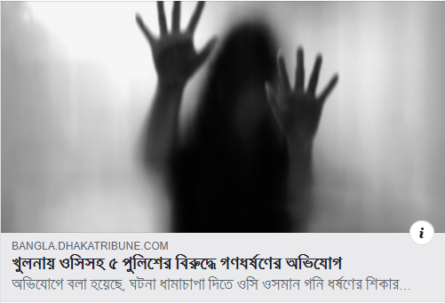 খুলনা জি আর পি থানার ওসি ওসমান গনি পাঠান সহ আরো পাঁচ পুলিশ কর্মকর্তা এক তরুণীকে রেলস্টেশন থেকে গ্রেফতার করে থানায় নিয়ে গিয়ে সারারাত ধরে দঙ্গল ধর্ষণ করেছে। তারপরে সেই নারীর নামে মাদক মামলা দিয়েছে।