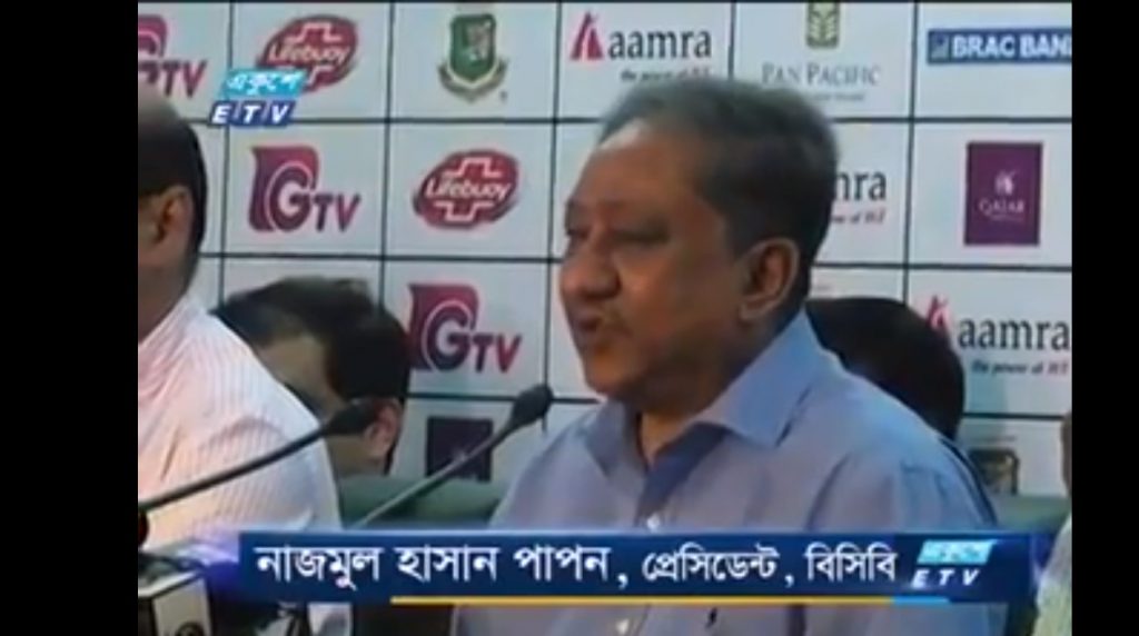 এই ভিডিওর ১০ মিনিট ৩০ সেকেন্ড থেকে ১১ মিনিট ৮ সেকেন্ড পর্যন্ত দেখুন। বাংলাদেশ ক্রিকেট বোর্ডের সভাপতি নাজমুল হাসান পাপন যিনি বাংলাদেশের সাবেক রাষ্ট্রপতি জিল্লুর রহমানের ছেলে ও গত নৈশ ভোটের এমপি এখানে কী বক্তব্য রেখেছেন শুনুন।