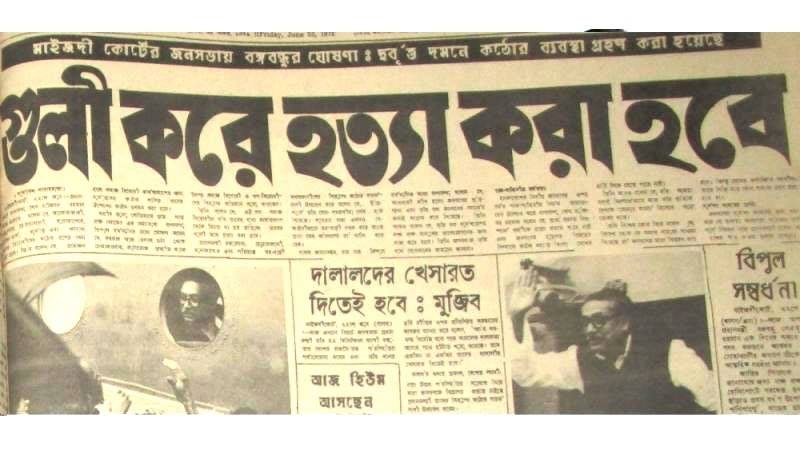 On June 22, 1972, in a rally of around 7 lakh people at Shaheed Bhulu Stadium, Noakhali, Sheikh Mujib, who was the PM then, announced: “If the antisocials do not refrain from heinous activities they will be shot dead.” The next day this statement was published in “Doinik Poorbodesh”.
